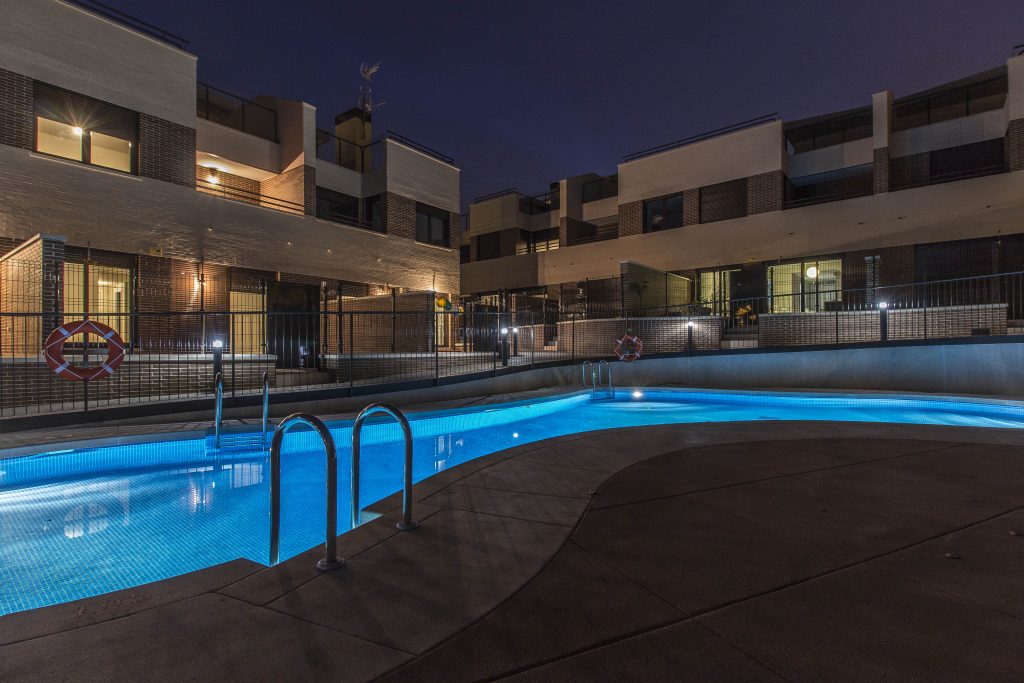 Promoción de 9 viviendas unifamiliares de alta calidad, entregadas en febrero de 2016. Estas viviendas de 3 y 4 dormitorios cuentan con calificación energética B y dos plazas de garaje subterráneas con acceso privado. Tienen jardines privados, tanto delanteros con acceso desde la calle como traseros con acceso a zonas comunes que incluyen una piscina de agua salada. Los interiores están detalladamente acabados con armarios empotrados, tarima AC4, cerámica SALONI, preinstalación de aire acondicionado, cristales bajo emisivos y pintura lisa.